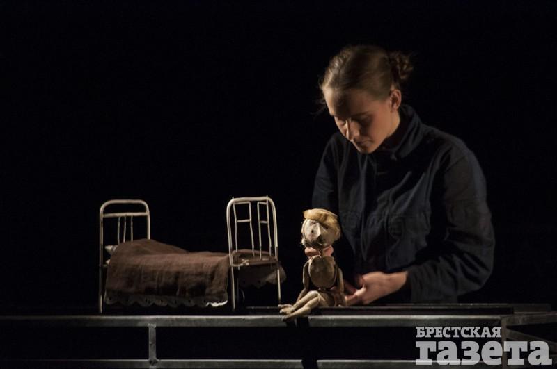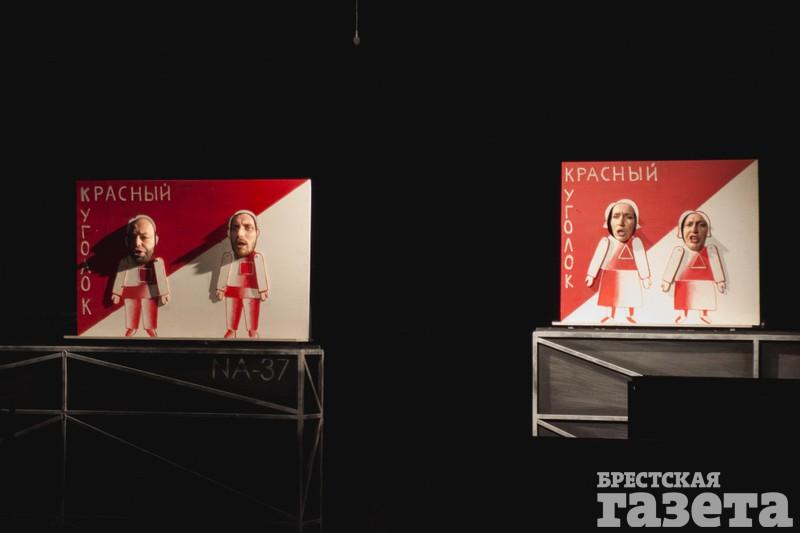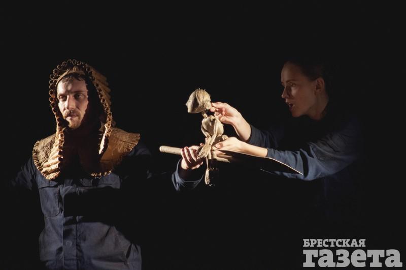 Но если постановка, идущая на латвийской сцене, именуется «новеллой о любви», то спектакль Брестского театра кукол получил саркастическую приписку «Хождение Ефросиньи Евстафьевой, молодой женщины, оставленной мужем, уехавшим строить коммунизм или еще что-нибудь».