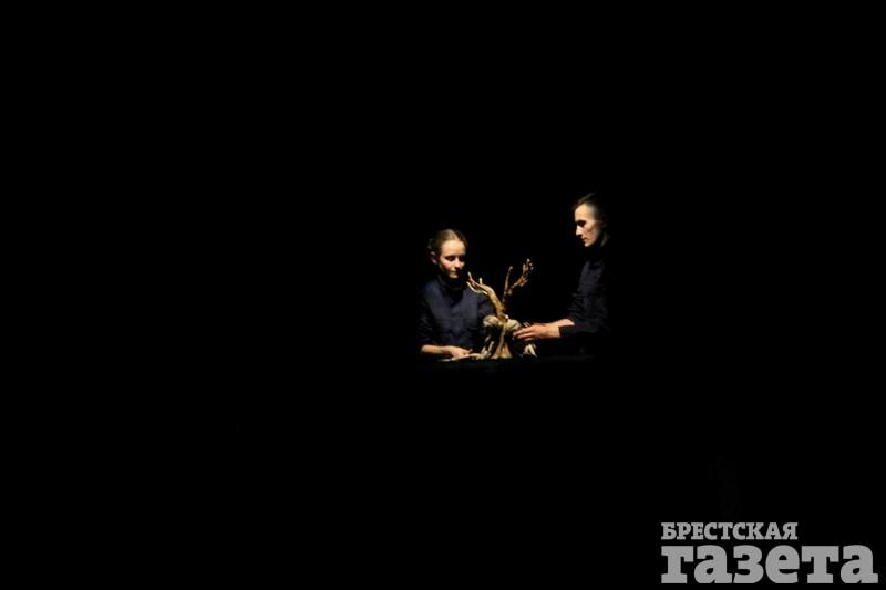 Спектакль получился еще и очень красивым, минималистическим. Сцена почти утопает в темноте. И на этом фоне разворачивается история о двух людях в огромном мире.