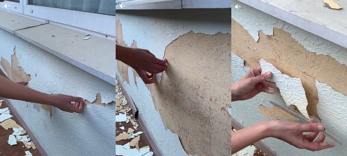 У роліку яна сцвярджае, што фарба пачала адслойвацца амаль адразу пасля завяршэння работ. На відэа відаць, што ў некаторых месцах пакрыццё трымаецца дрэнна і адстае ад сцен.
