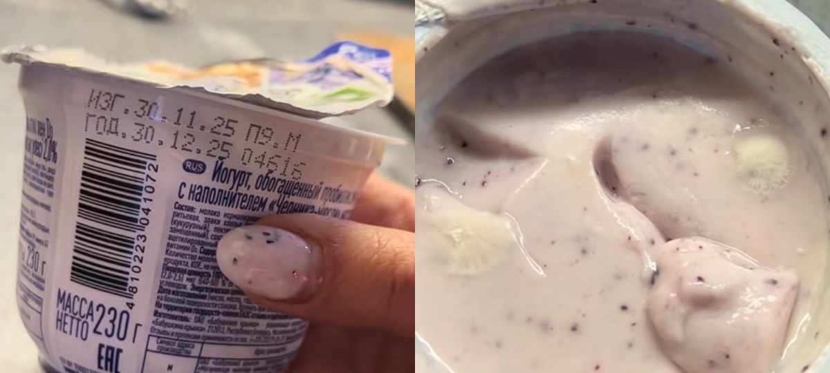 Як вынікае з роліка, тэрмін прыдатнасці прадукта быў да 30.12.2025 у закрытай упакоўцы. Жанчына адкрыла прадукт задоўга да яе сканчэння — 17.12.2025.