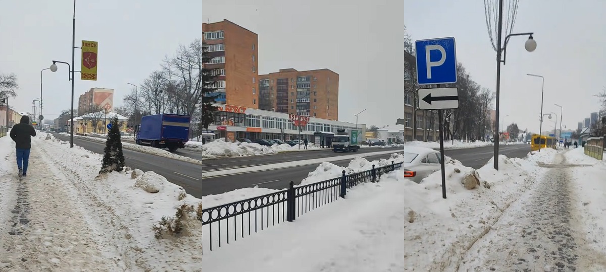 У TikTok з’явіліся відэа, на якім жыхар Пінска паказаў сітуацыю з уборкай снегу ў горадзе. Паводле яго слоў, снегаўборачная тэхніка не вывозяць снег нават з галоўных вуліц, а проста скідвае яго на абочыны каля тратуараў і агароджаў. У выніку снежныя гурбы замінаюць руху аўтамабіляў і значна ўскладняюць перасоўванне пешаходаў.