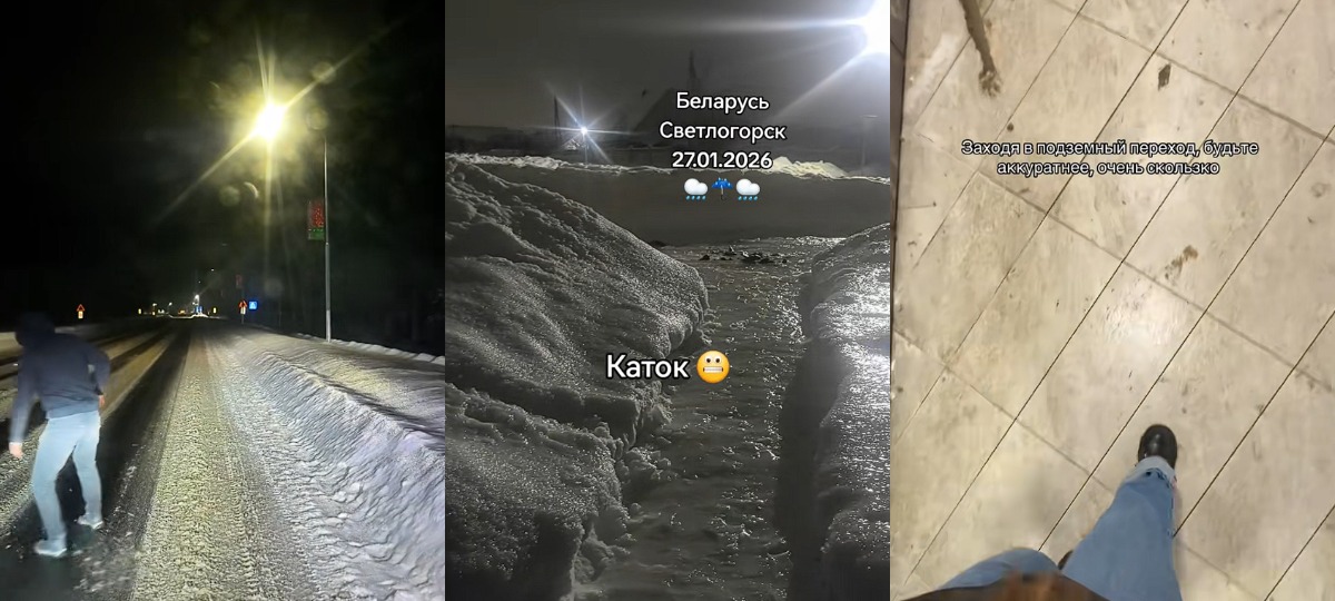 Праблему заўважылі ў многіх гарадах: ад Светлагорска да Магілёва. 27.01.2026 жыхарка Светлагорска выклала відэа ў TikTok, у якім паказала стан вуліцы ў раёне прыватнага сектара. На відэа відаць, што снег, што ляжыць на сцежках, цалкам утварыўся ў лёд і пакрыўся бляскам. Выглядае на тое, што вуліцу камунальнікі абмінулі, бо на ёй не бачна слядоў пяску, якім у Беларусі часта пасыпаюць небяспечныя для хадзьбы зоны.