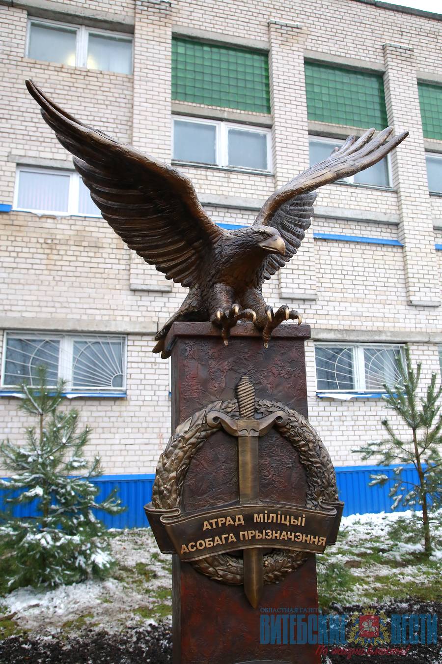В Витебске 16 ноября торжественно открыли памятный знак в честь ОМОНа, сообщает областная газета «Витебские вести». Решение о создании скульптурной композиции приняли еще весной, но установили ее только в ноябре, приурочив к 30-летию образования в Беларуси отрядов милиции особого назначения.