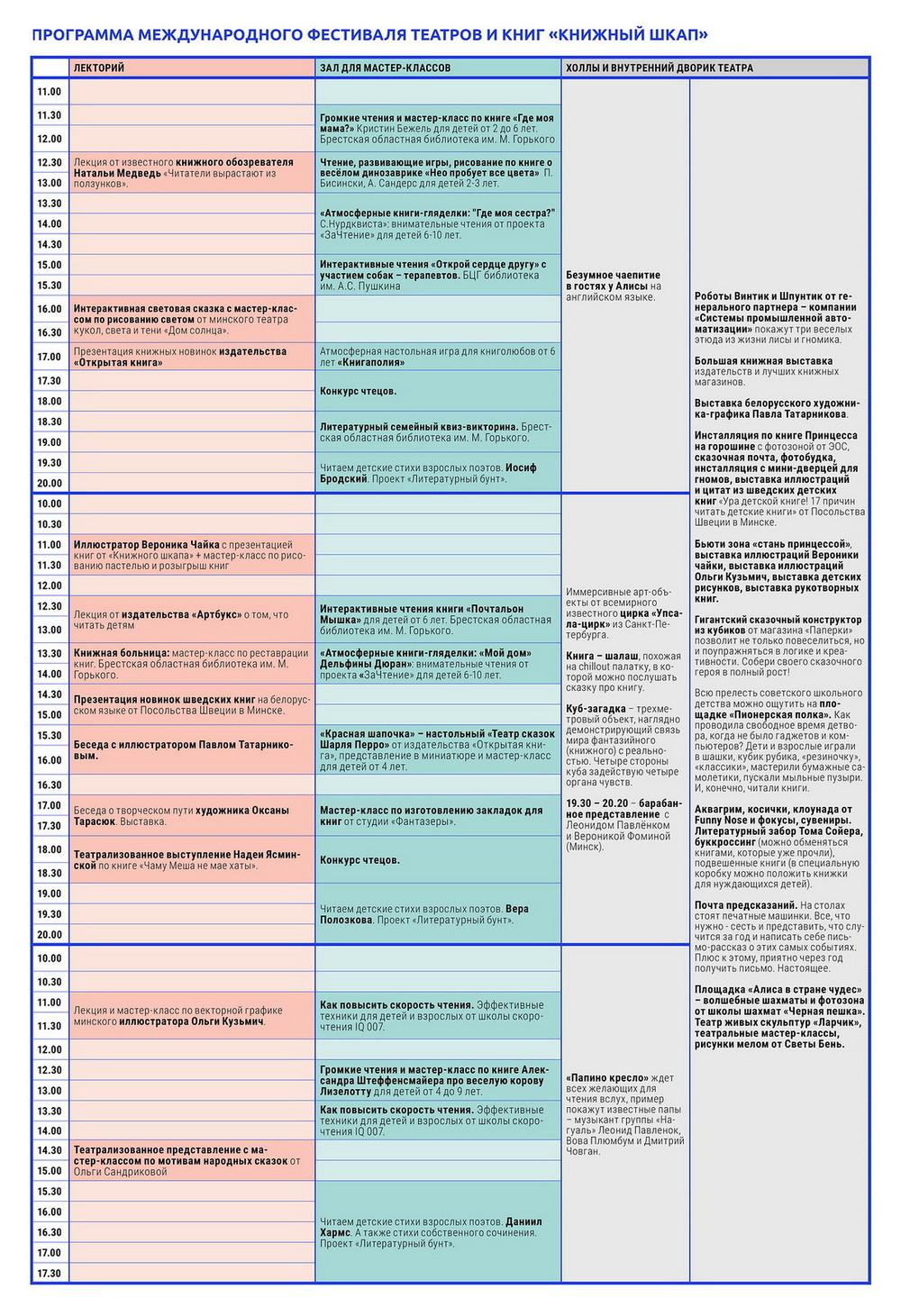 Программа Международного фестиваля театров и книг «Книжный шкап».