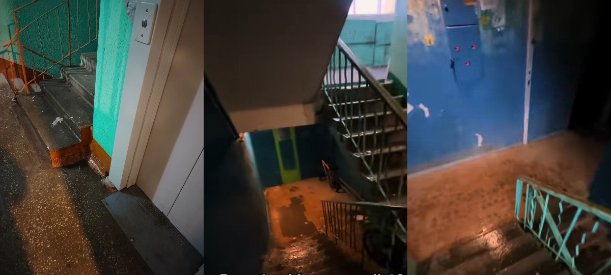 На видео, опубликованном мужчиной, видно, что вода залила всю лестничную площадку — с верхних этажей донизу. Причины такого наводнения пока не установлены.