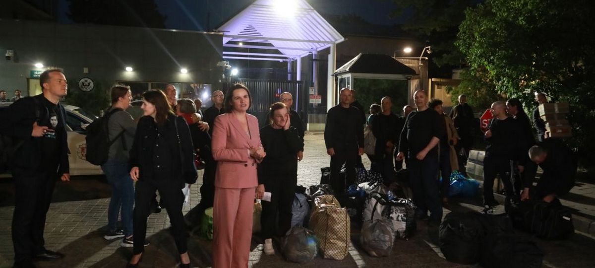 Вызваленыя палітвязні каля амбасады ЗША ў Вільні, Літва. 11 верасня 2025 года. Фота: Белсат