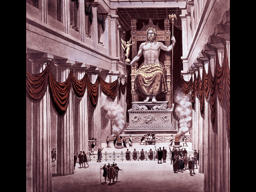 - Статуя Зевса в Олимпии — памятник Ленину. Во-первых, потому что Владимиру Ильичу поклонялись в свое время, подобно Зевсу. Еще одна параллель просматривается в том, как чтят их память в истории. Зевса — продолжая проводить Олимпийские игры, Ленина — бдительно охраняя памятники в каждом белорусском городе.