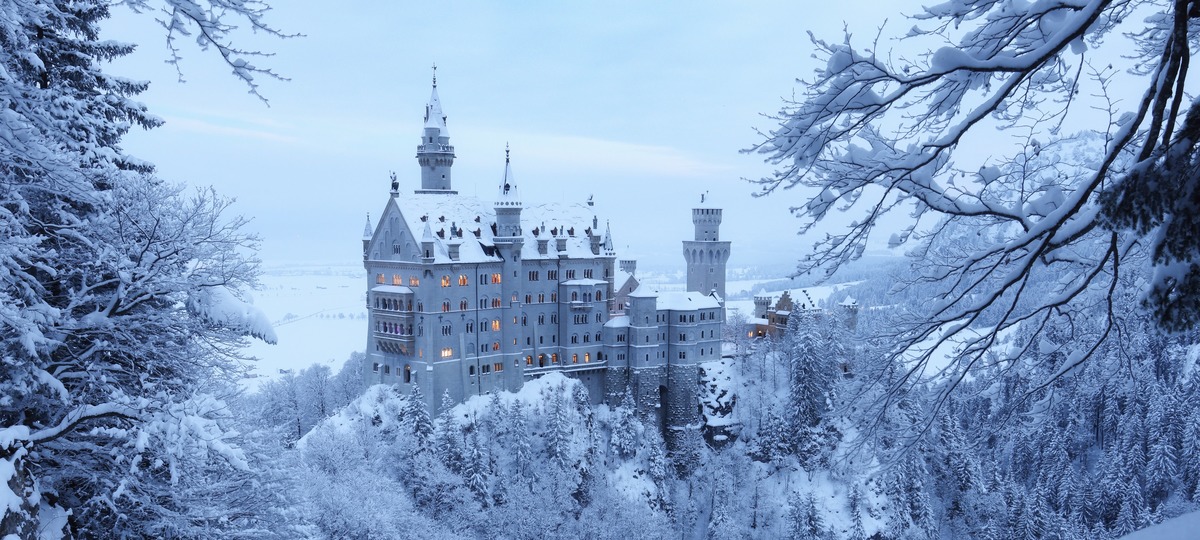 Замок Нойшванштайн и окрестности. Это, пожалуй, самый узнаваемый замок Германии: романтическое сооружение XIX века, построенное королем Людвигом II, вдохновившее образ замка Диснея. Зимой он словно становится еще более сказочным: башни и стены покрыты снегом, а вокруг тянутся тихие дорожки для прогулок.