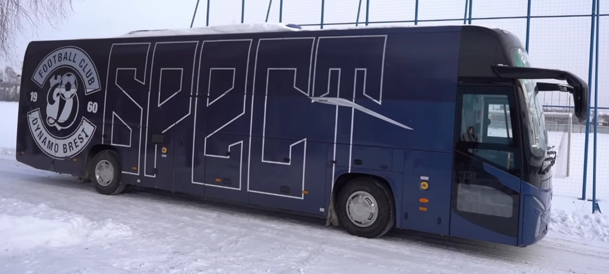Новый автобус футбольного клуба «Динамо-Брест». Скриншот видео