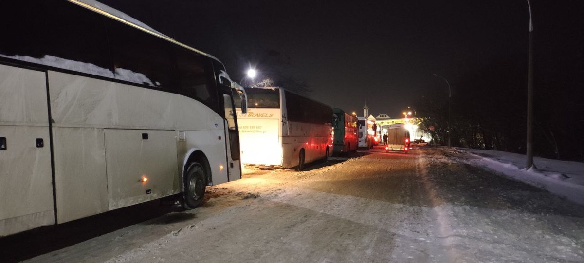 «В 17.00 [11 января] приехали на границу. Встали в очередь 38-ми. В 17.30 за 300 евро со всего автобуса встали вместо четвертого автобуса в очереди. В 19.40 заехали за шлагбаум. В 22.40 пригласили на беларуский паспортный контроль. Прошли быстро. В 23.00 ожидание у Duty Free. На улице мороз −16, в магазинах присесть особо негде. В итоге — 3,5 часа. В 04.00 подъехали на польский контроль, впереди 4 автобуса. С 06.00 до 07.00 польский контроль. Итог: прохождение обеих границ — 14 часов. Были 38-ми, поменяли на 4-е».