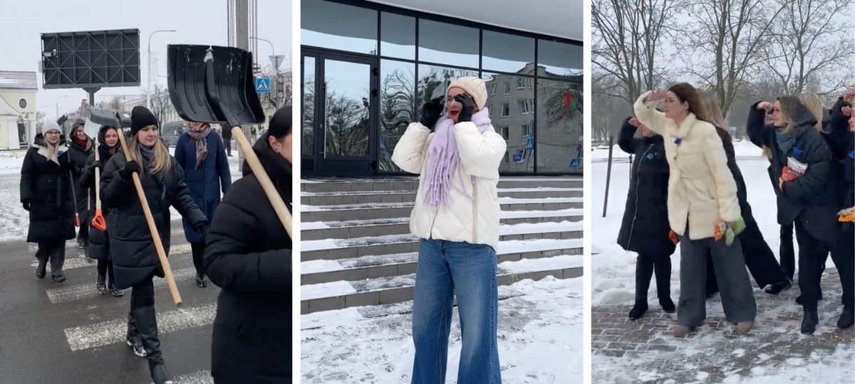 Вероятно, она была инициатором пропагандистского ролика, где участницы якобы выполняют призыв Лукашенко взять лопаты и пойти убирать снег.