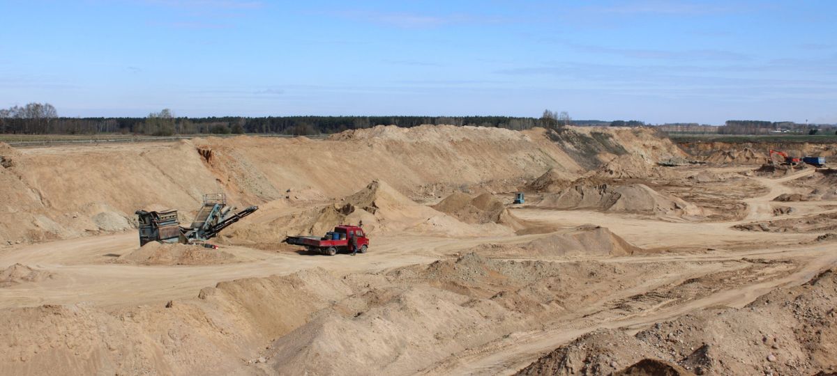 Добыча песка на песчаном карьере в одном из городов Беларуси