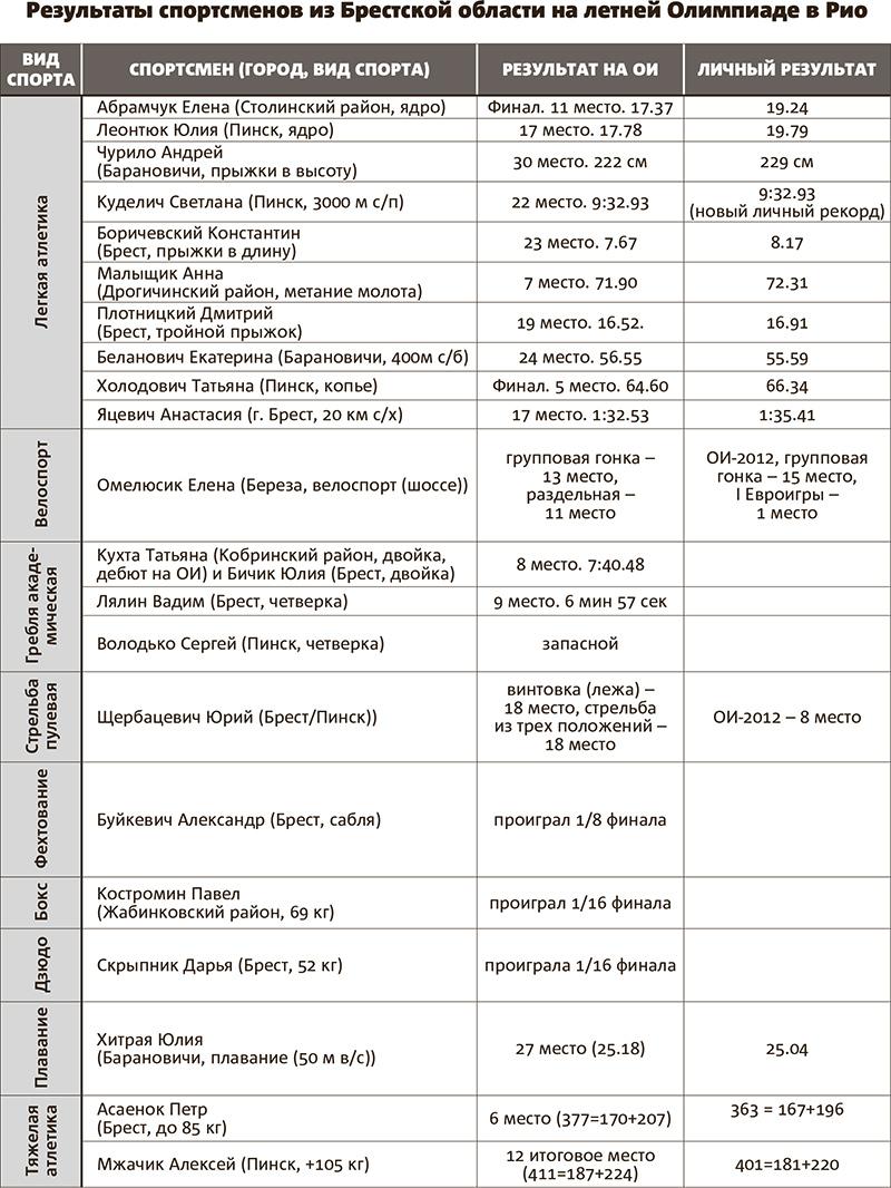 Олимпийским чемпионом в Рио-де-Жанейро стал Владислав Гончаров, выигравший золото в состязаниях прыгунов на батуте. Серебряные медали завоевали Дарья Наумова (тяжелая атлетика), Вадим Стрельцов (тяжелая атлетика), Мария Мамошук (женская борьба), Иван Тихон (легкая атлетика — метание молота).